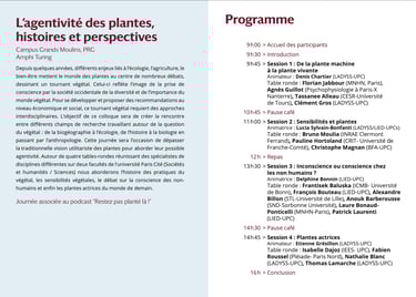 Une journée dense, traversée par des disciplines très différentes, et surtout par une question commune : comment penser les plantes autrement que comme de simples ressources, de simples objets, ou de simples décors ?
